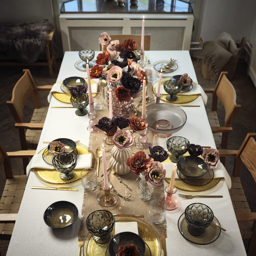 Αν και οι πιθανότητες να πάρουμε γαστρονομική έμπνευση από τα σκανδιναβικά Χριστούγεννα είναι μάλλον περιορισμένες, το ίδιο το τραπέζι μας μπορεί να υιοθετήσει τη διακριτική λάμψη τους. Η γαλοπούλα μας θα σερβιριστεί σε γυάλινες πιατέλες ELMER, σε κίτρινες και γκρίζες αποχρώσεις, τα σκαλιστά μπολ TONY θα δώσουν έναν επίσημο τόνο και το χρωματιστό μπολ LASSEθα φιλοξενήσει μελομακάρονα και κουραμπιέδες.