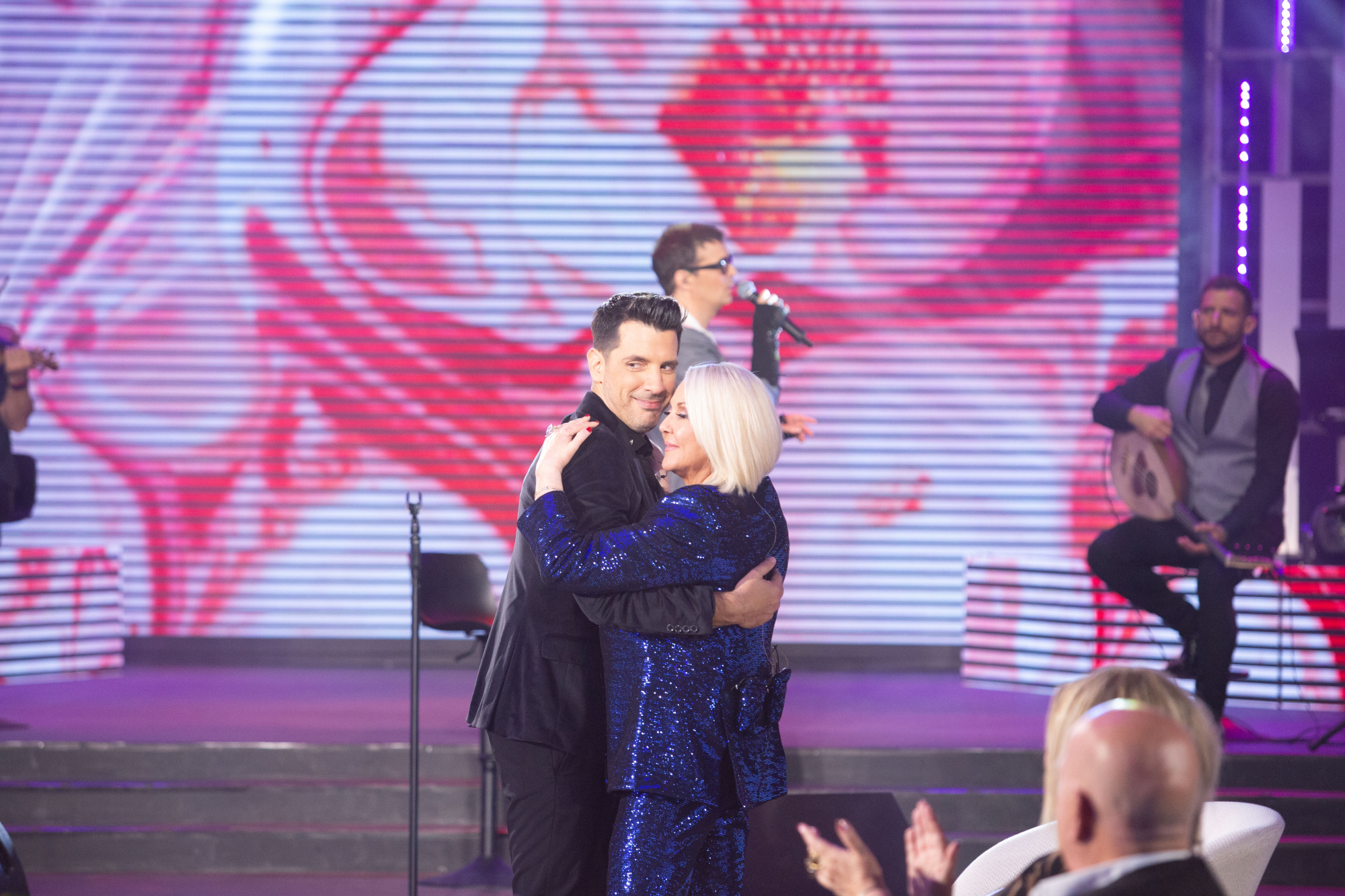 Η Ρούλα Κορομηλά υποδέχτηκε τους δύο φίλους και τους καλεσμένους τους στη σκηνή του MEGA και όλοι μαζί έγιναν μια μεγάλη παρέα.
