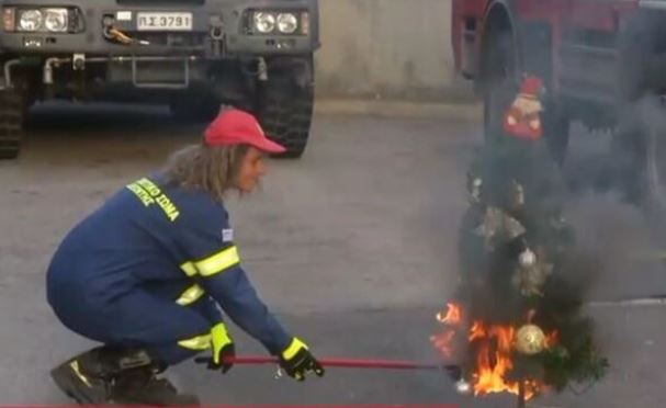 Συνεργείο της ΕΡΤ βρέθηκε σε πυροσβεστικό σταθμό στο Μαρούσι όπου πυροσβέστης έβαλε ζωντανά φωτιά σε ένα μικρό δέντρο και ο εκπρόσωπος Τύπου της Πυροσβεστικής, ανέφερε ότι στόχος είναι να δείξουν πόσο γρήγορη είναι η καύση του.