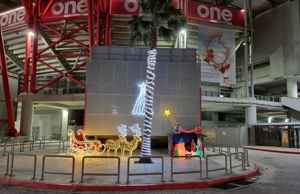 Το φαληρικό γήπεδο στολίστηκε με πολύχρωμα φωτάκια, λαμπάκια και φυσικά το απαραίτητο Χριστουγεννιάτικο δέντρο, δίνοντας μια εντυπωσιακή νότα στον περιβάλλοντα χώρο.
