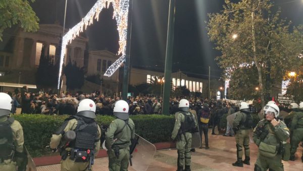 Πλήθος κόσμου συγκεντρώθηκε στα Προπύλαια, από όπου ξεκινά η μεγάλη πορεία προς τη Βουλή. Το κλίμα είναι τεταμένο μετά και το περιστατικό του πυροβολισμού από αστυνομικό του 16χρονου Ρομά που χαροπαλεύει. Συνθήματα κατά της κρατικής καταστολής, της φτώχειας και της εξαθλίωσης είναι αυτά που κυριαρχούν.