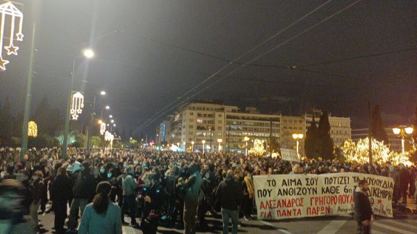 Νωρίτερα, μαθητές, φοιτητές και διάφορες συλλογικότητες συγκεντρώθηκαν στα Προπύλαια και πραγματοποίησαν πορεία στη μνήμη του Αλέξανδρου Γρηγορόπουλου με κατεύθυνση προς το Σύνταγμα.