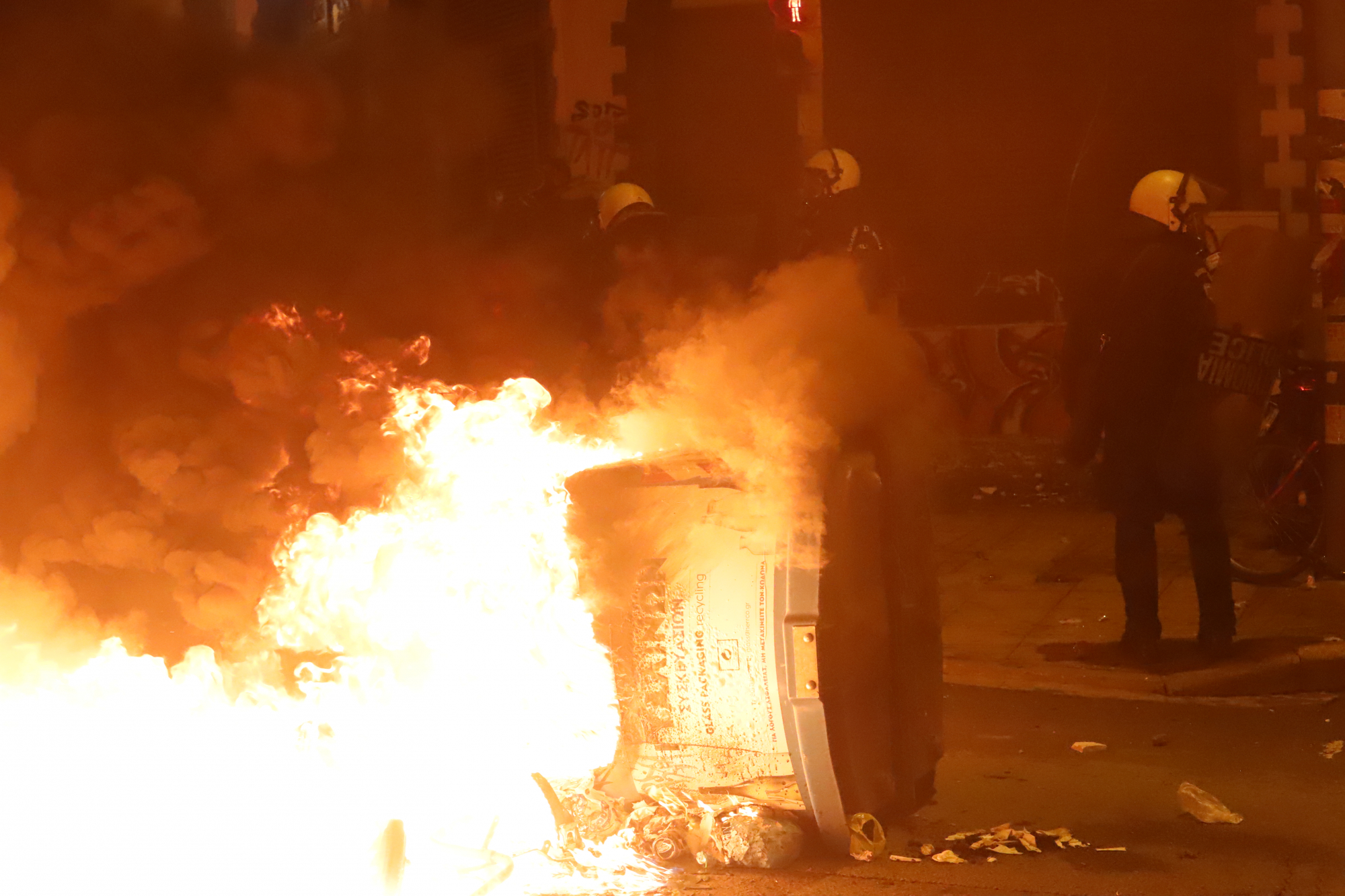 Επεισόδια πραγματοποιούνται και στις οδού Ολυμπιάδος και Κασσάνδρου ενώ τουλάχιστον επτά κάδοι έχουν τυλιχθεί στις φλόγες με την πυροσβεστική υπηρεσία να έχει κληθεί στο σημείο.