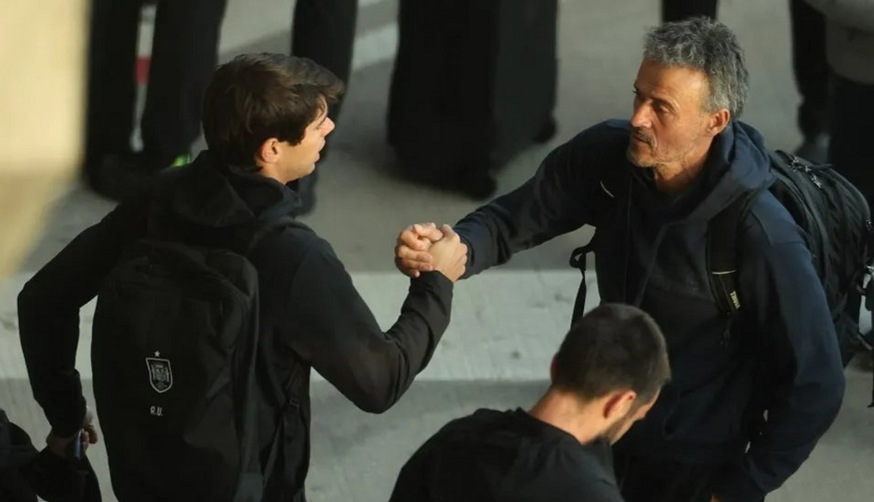 Μόνο 14 παίκτες μαζί με τον πρόεδρο της ομοσπονδίας Λουίς Ρουμπιάλες και τον προπονητή Λουίς Ενρίκε, πέταξαν για τη Μαδρίτη. Στο αεροπλάνο, όπως αναφέρει η ισπανική εφημερίδα Marca, επιβιβάστηκαν οι: