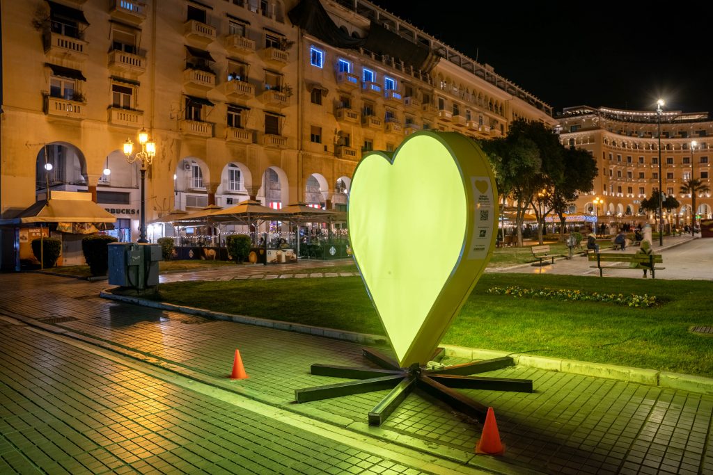 Στη συνέχεια, οι κίτρινες καρδιές ταξίδεψαν προς τον ελληνικό βορρά. Η δεύτερη φωταγώγησε την πλατεία Αριστοτέλους στη Θεσσαλονίκη, τοποθετημένη σε περίοπτη θέση με θέα τον Θερμαϊκό. Στην εκδήλωση για τη φωταγώγησή της, παρέστη και ο πρεσβευτής της δράσης «Καθαρή Εβδομάδα», Γιώργος Καπουτζίδης, ο Α’ Αντιπρόεδρος ΚΕΔΕ, Λάζαρος Κυρίζογλου, ο Δήμαρχος της πόλης, Κωνσταντίνος Ζέρβας, καθώς επίσης και ο Διευθύνων Σύμβουλος της Kärcher Greece, κ. Λάζαρος Φραντζής.