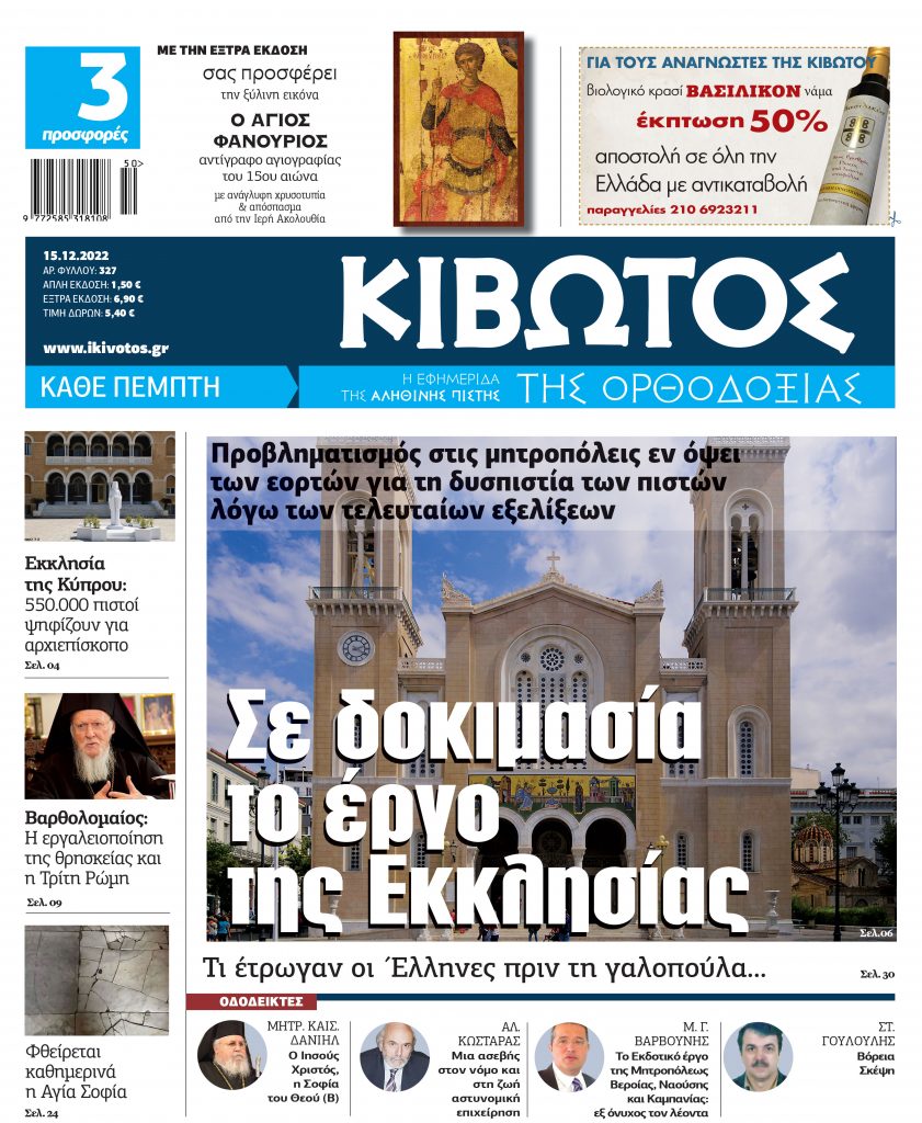 Το νέο φύλλο της εφημερίδας ΚΙΒΩΤΟΣ ΤΗΣ ΟΡΘΟΔΟΞΙΑΣ, που κυκλοφορεί την Πέμπτη, 15 Δεκεμβρίου. Όλες οι Προσφορές!