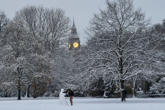 Σφοδρή χιονόπτωση πλήττει τη Βρετανία. Περίπου 40 άτομα στο Σάσσεξ άφησαν τα οχήματά τους στο δρόμο και κατέφυγαν σε παμπ για να προστατευτούν από την κακοκαιρία.