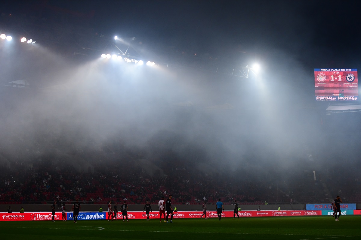 Μικρή διακοπή υπήρξε στο ξεκίνημα της αναμέτρησης του Ολυμπιακού με τον Ατρόμητο λόγω πτώσης του φωτισμού στο γήπεδο.