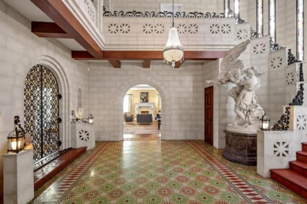 Τα ζωγραφισμένα στο χέρι πλακάκια, το περίτεχνο φουαγιέ, οι τοίχοι από γυψομάρμαρο και τα κάγκελα από σφυρήλατο σίδερο.