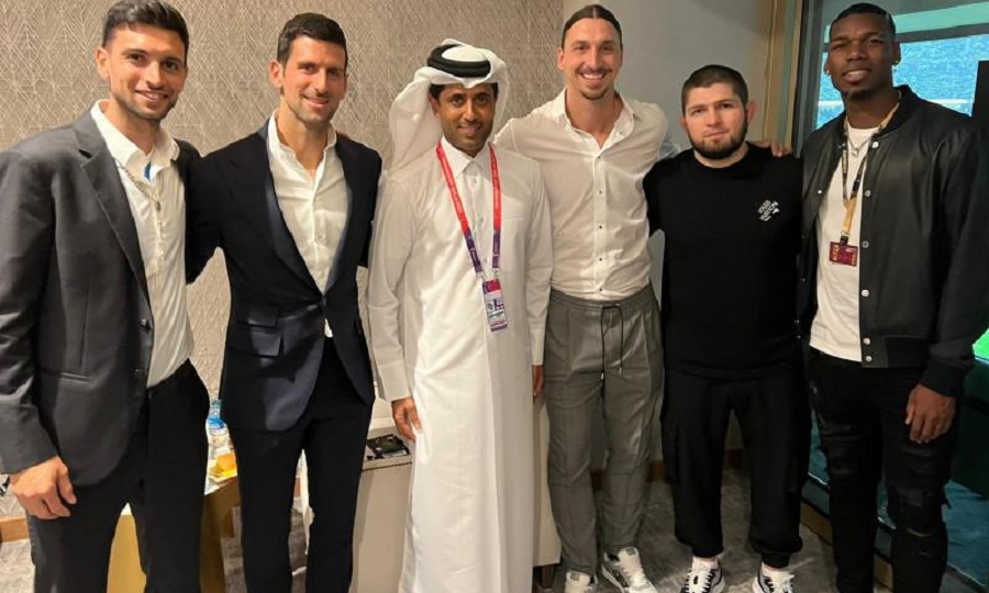 Χαβιέ Παστόρε, Ζλάταν Ιμπραΐμοβιτς, Νασέρ Αλ Κελαϊφί, Νόβακ Τζόκοβιτς , Πολ ΠογΚμπά και Χαμπίμπ Νουρμαγκομέντοφ παρακολουθούν από κοντά την γιγαντιαιών διαστάσεων μάχη ανάμεσα στην Αργεντινή και την Γαλλία για το ποια θα σκαρφαλώσει στην κορυφή του κόσμου.