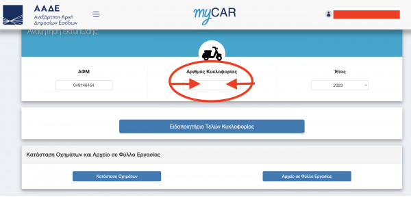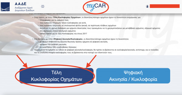Την αναζήτηση των τελών μπορεί να την κάνει κάποιος μέσω της ιστοσελίδας της ΑΑΔΕ (www.aade.gr) στην εφαρμογή myCar. Εκεί θα διαπιστώσει ότι υπάρχουν διάφορες επιλογές που αφορούν τα τέλη κυκλοφορίας, την ακινησία οχήματος, τη βεβαίωση μη οφειλής. Αφού προχωρήσει ο ενδιαφερόμενος τη διαδικασία με τα αντίστοιχα κλικ θα επιλέξει το όχημα για το οποίο θέλει να εκτυπωθεί το ειδοποιητήριο πληρωμής (εφόσον έχει περισσότερα του ενός οχήματα) και στη συνέχεια βάσει του αριθμού RF θα προχωρήσει στην πληρωμή.