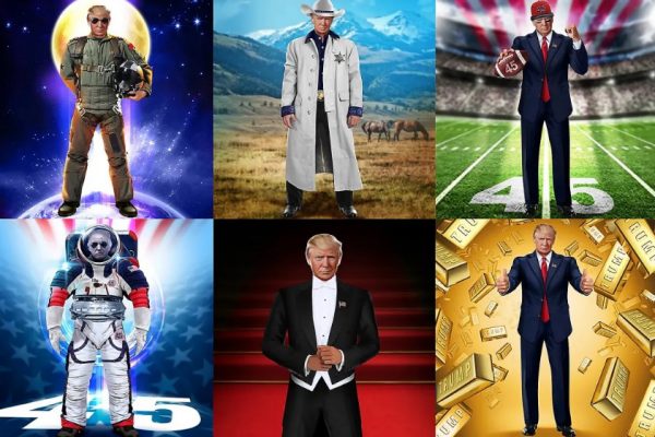 Η νέα ανακοίνωση, που άφησε άφωνους πολλούς, δεν ήταν παρά η διάθεση μιας σειράς κιτς NFTs με τη μορφή του Τραμπ σε διάφορες εκδοχές -από υπερήρωας, έως σερίφης ή αστροναύτης.