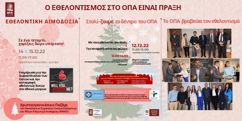 Σειρά δράσεων με πολλαπλά μηνύματα εθελοντισμού και κοινωνικής προσφοράς υλοποίησε φέτος το Οικονομικό Πανεπιστήμιο Αθηνών.