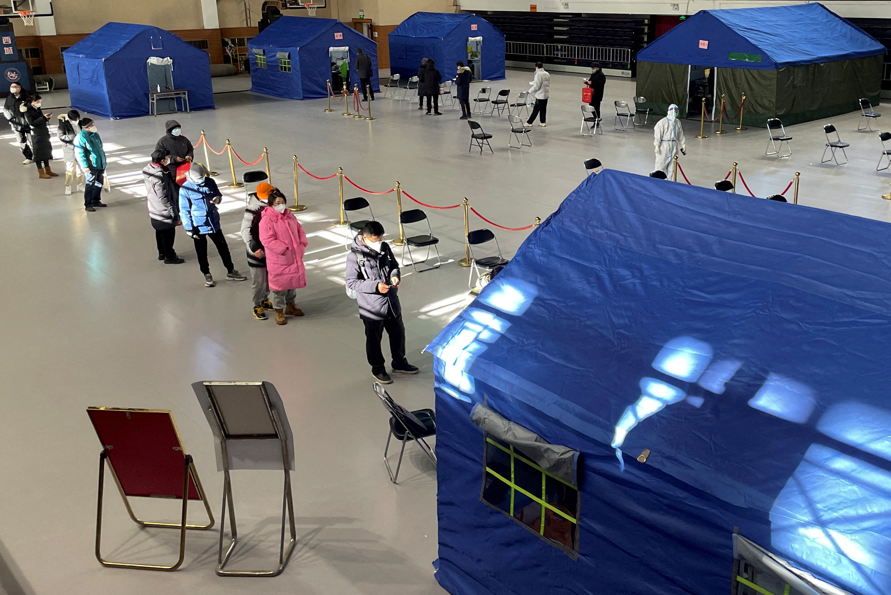 FILE PHOTO: Makeshift fever clinic set up inside a stadium, amid the COVID-19 outbreak in Beijing