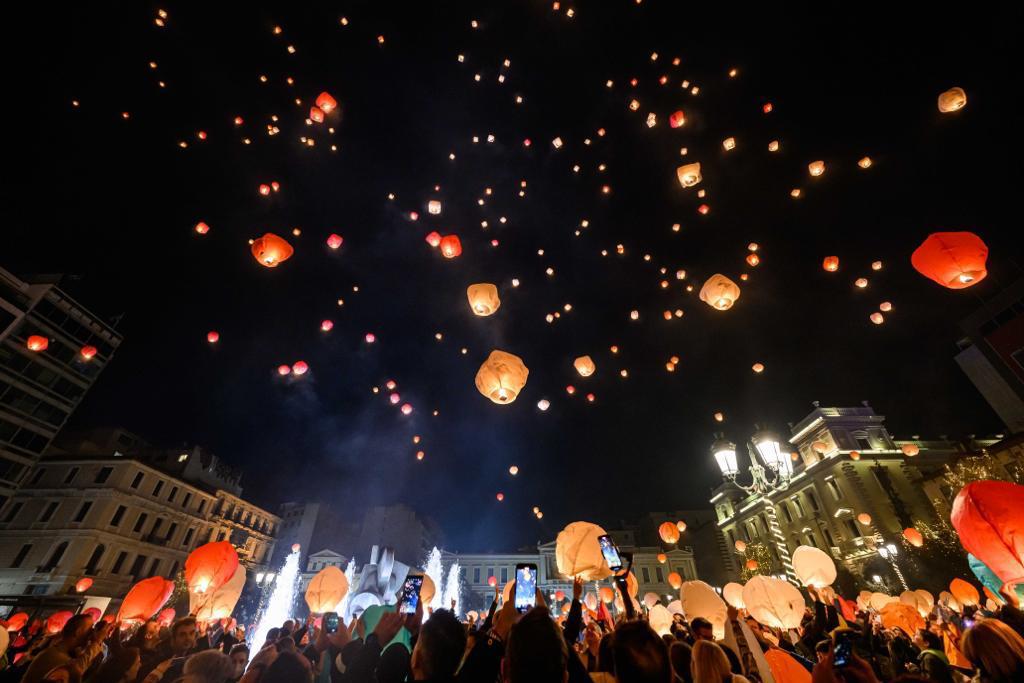 Μπροστά από το Δημαρχείο της Αθήνας, μέσα σε ένα υπέροχο χριστουγεννιάτικο σκηνικό, μικροί και μεγάλοι άναψαν τα βιοδιασπώμενα φαναράκια τους και τα άφησαν να ανέβουν ψηλά στον ουρανό, μαζί με τις ευχές τους για ένα καλύτερο αύριο, γεμάτο υγεία, αγάπη και ελπίδα.