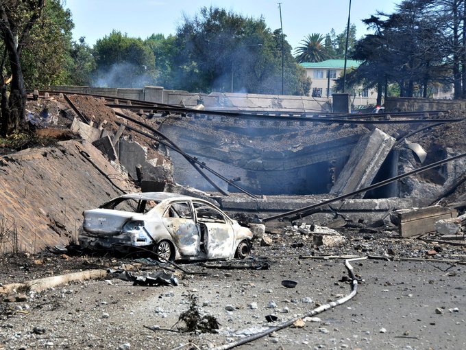 Güney Afrika Cumhuriyeti’nin Johannesburg kentinde patlama yaşandı. Devlet televizyonu SABC’nin haberine göre, Johannesburg’un Boksburg bölgesinde köprü altında sıkışan akaryakıt tankeri, sürtünme nedeniyle alev alarak patladı. pic.twitter.com/w5QqEB0dFF