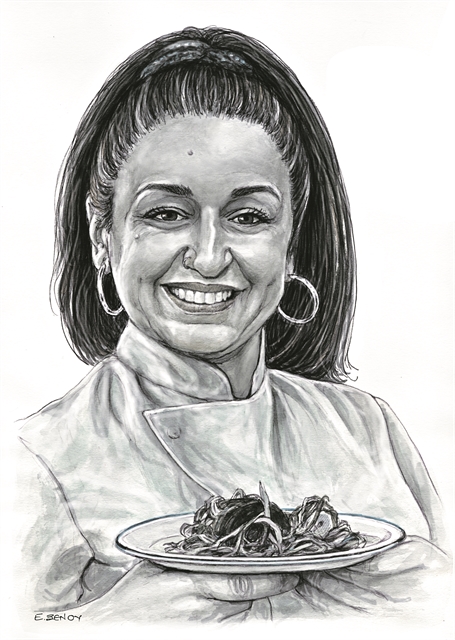 Τα πιάτα συνεχίζουν να έρχονται στο τραπέζι, οι φωτογραφίες δίνουν και παίρνουν, όπως και οι παρατηρήσεις της για τις τεχνικές και τον κόπο που χρειάζεται για να φτιαχτεί το καθένα από αυτά. Δείχνει να απολαμβάνει τη διαδικασία και να δίνει τέτοια προσοχή στις ιδέες του σεφ, σαν να ήταν δική της πρόταση. «Βάζω νοιάξιμο σ’ ένα πιάτο, όταν έχω όρεξη να μαγειρέψω, και πετυχαίνει πάντα. Οταν δεν έχω όρεξη και το κάνω μόνο για να φάω, είναι αλλιώς. Στο σπίτι συνήθως εμείς οι μάγειρες βαριόμαστε. Δεν θα πω ψέματα», εξομολογείται με απόλυτη ειλικρίνεια. «Τα χρόνια που δούλευα σερί σεζόν, δεν ήθελα να πηγαίνω σπίτι να βλέπω την κουζίνα. Νομίζω, θα το πούνε όλοι οι μάγειρες, τουλάχιστον το μεγαλύτερο ποσοστό τους, ότι δεν μαγειρεύουν στο σπίτι γιατί έχουν μπουχτίσει. Προσπαθείς να πας σπίτι να χαλαρώσεις γιατί είναι πάρα πολλές οι ώρες σε μια κουζίνα. Οπότε το μόνο που θέλεις όταν σχολάσεις είναι να βγεις μια βόλτα ή να ξεσκάσεις λίγο. Δεν θες να μπεις πάλι να μαγειρεύεις. Για εμάς τις γυναίκες αν κάνεις οικογένεια είναι διαφορετικά γιατί πρέπει να φροντίσεις και τη δουλειά παράλληλα. Αλλά δεν θεωρώ ότι είναι όλα ένα «πρέπει», το φτιάχνεις αυτό».