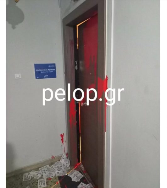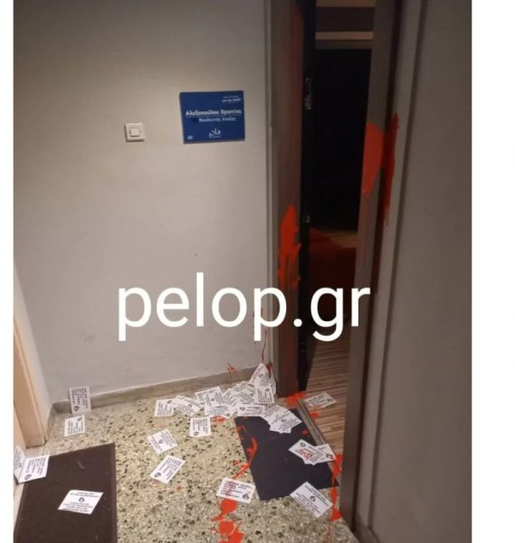 Επίθεση από αντιεξουσιαστές δέχθηκε το γραφείο της βουλεύτριας, Χριστίνας Αλεξοπούλου, στην Πλατεία Γεωργίου στην Πάτρα.