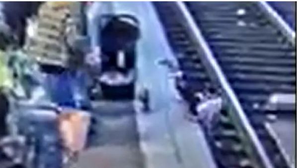 Ευτυχώς, ένας παρευρισκόμενος έσωσε το παιδί από τις ράγες πριν έρθει το τρένο.