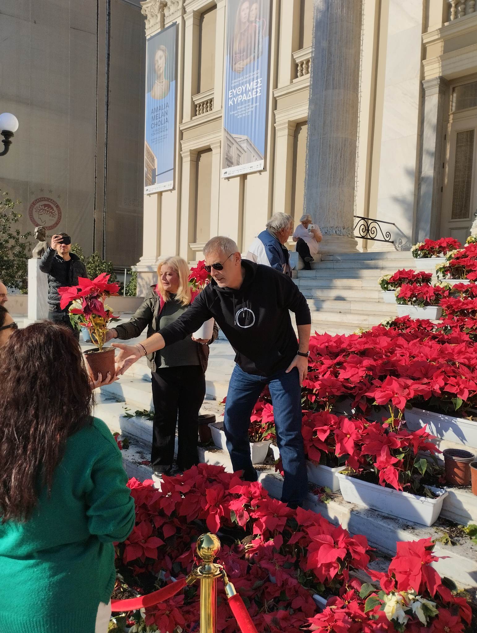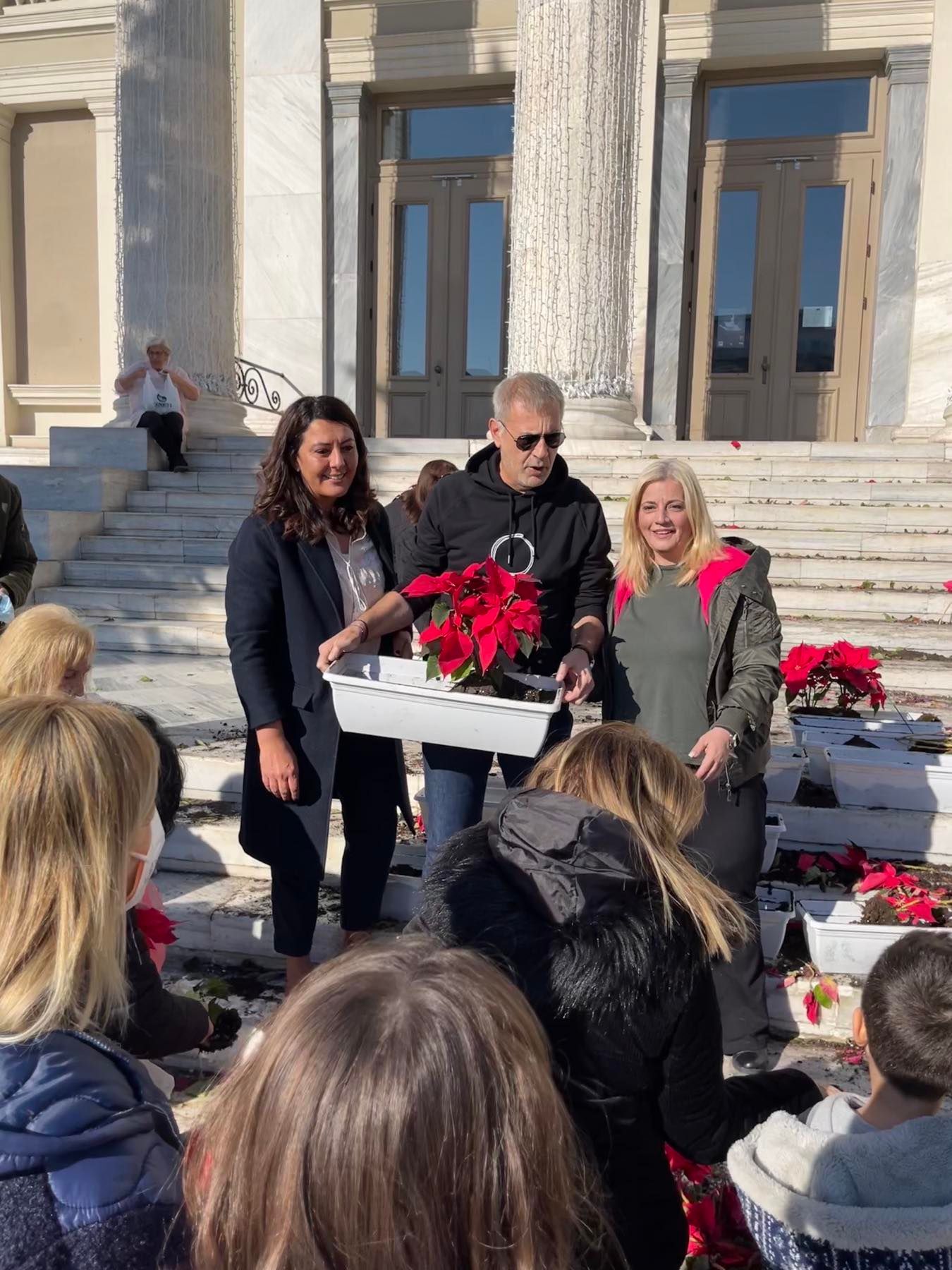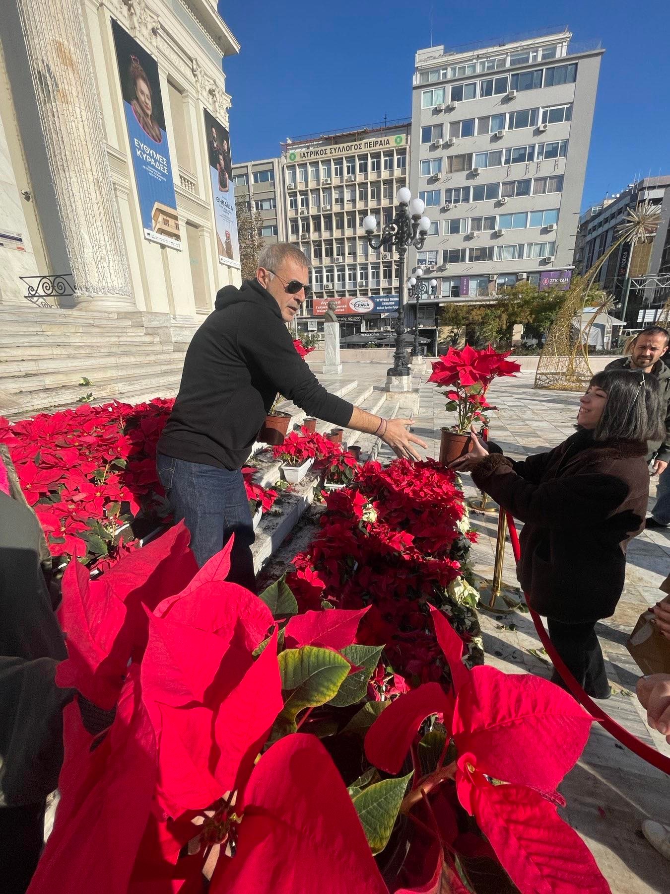 Ο Δήμαρχος Πειραιά κ. Γιάννης Μώραλης μαζί με τις Αντιδημάρχους κα Ανδριάνα Ζαρακέλη και κα Αντωνία Καρακατσάνη, προσέφεραν στους περαστικούς τα αλεξανδρινά που στόλιζαν την είσοδο του Δημοτικού Θεάτρου Πειραιά τις ημέρες των γιορτών.