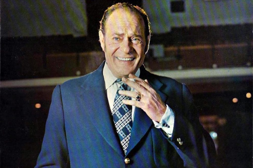 Ο αξέχαστος ηθοποιός όμως αγαπούσε τη Μαρινέλλα και στην πραγματική ζωή και συχνά την απολάμβανε σε νυχτερινά κέντρα στο πρώτο τραπέζι όπως δείχνει αυτή η φωτογραφία από τα τέλη της δεκαετίας του 60 που τον απεικονίζει να απολαμβάνει την τραγουδίστρια μαγεμένος».