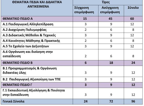 Η εξ αποστάσεως εισαγωγική επιμόρφωση αφορά στα ακόλουθα Θεματικά Πεδία και Διδακτικά Αντικείμενα: