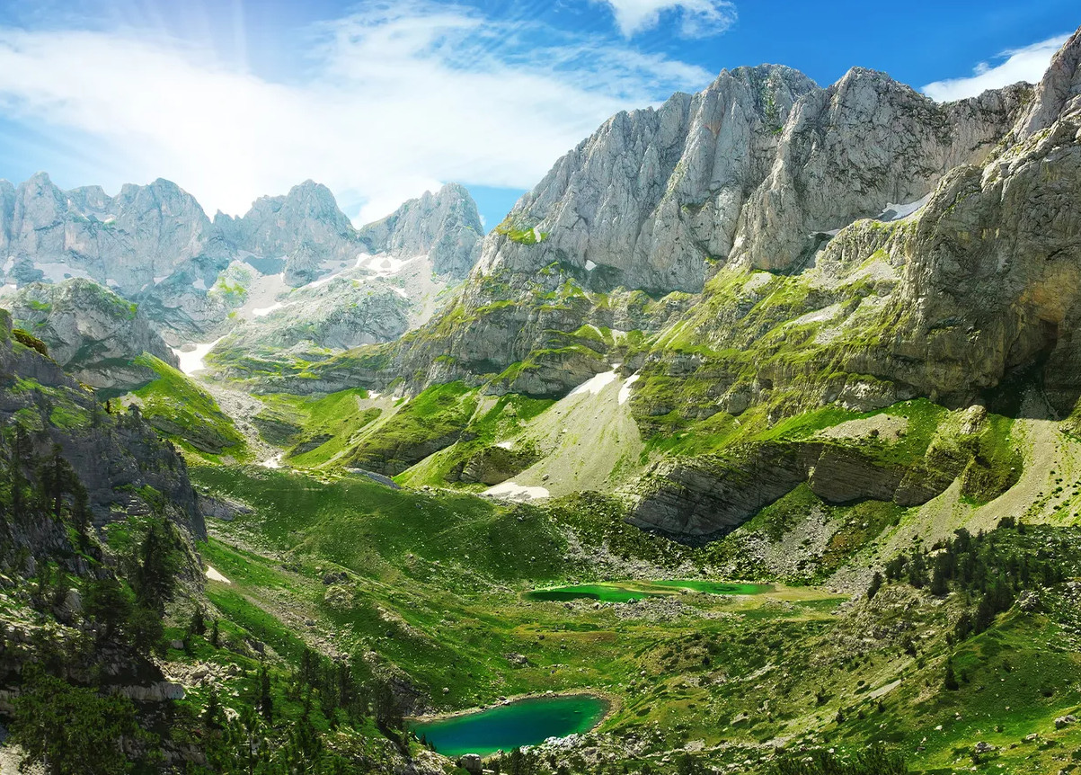 Εκτεινόμενες από τη Βόρεια Αλβανία προς το νότιο Κοσσυφοπέδιο και το βορειοανατολικό Μαυροβούνιο, οι Αλβανικές Άλπεις είνια περισσότερο γνωστές με τα τοπικά αλβανικά (Bjeshkët e Nëmuna) και σερβοκροατικά (Prokletije) ονόματά τους. Και τα δύο σημαίνουν «τα καταραμένα βουνά».
