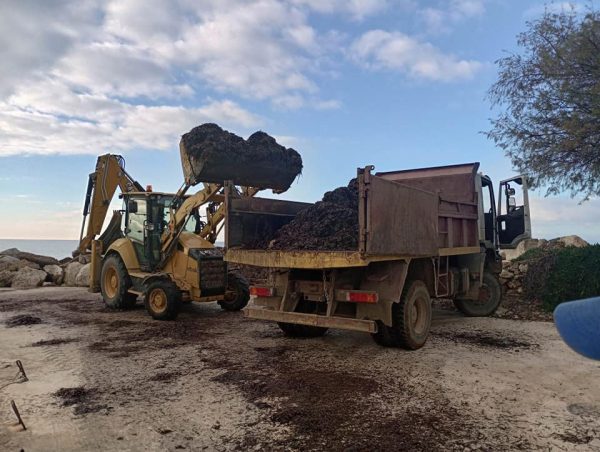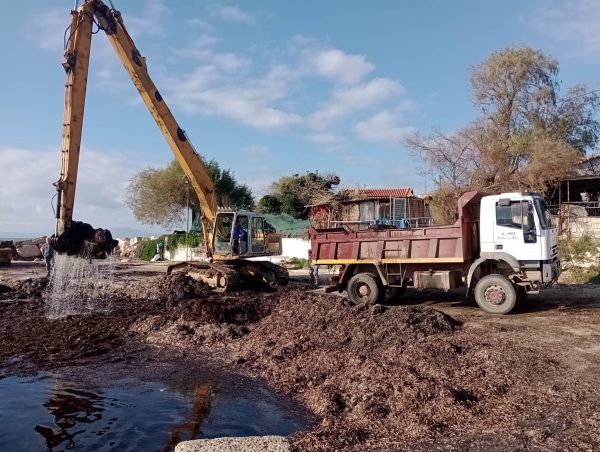 Γέμισε φύκια το λιμανάκι της Γλύφας με αποτέλεσμα να στηθεί μια μεγάλη επιχείρηση απομάκρυνσης τους.