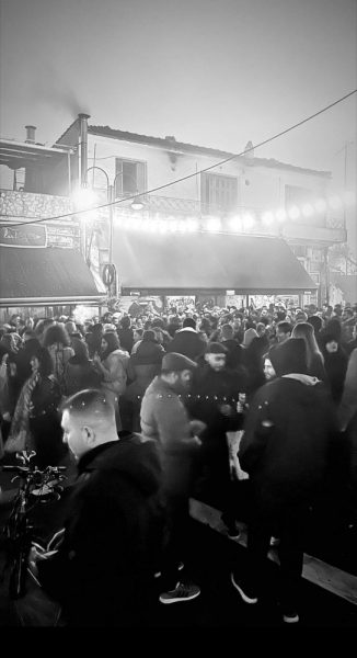 Μετά από 20 χρόνια λειτουργίας ένα μεζεδοπωλείο στο κέντρο της Λάρισας «έβαλε λουκέτο» και αποφάσισε να το γιορτάσει με ένα ξέφρενο γλέντι, από το οποίο δεν έλειψαν εικόνες με πέταγμα τραπεζιών και σπάσιμο πιάτων.
