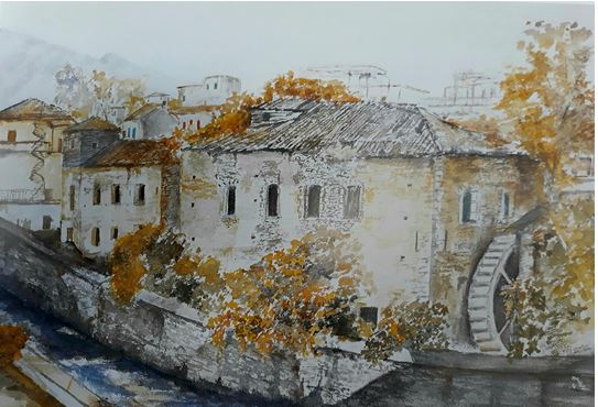 Το εγκαταλελειμμένο υδροκίνητο εργοστάσιο Παπαϊωάννου στη Λιβαδειά, προοριζόταν για πρότυπο Μουσείο Υδροκίνησης. Από την ασυνεννοησία των υπευθύνων, το εργοστάσιο αυτό έχει πλήρως καταρρεύσει, με βυθισμένο τον μηχανικό του εξοπλισμό στις λάσπες του ποταμιού… (Ακουαρέλα του Πέτρου Μακρή)