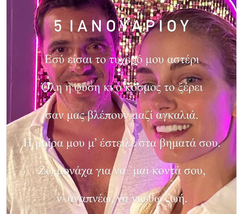 Συγκεκριμένα η Δούκισσα Νομικού ανέβασε στον προσωπικό της λογαριασμό στο Instagram μια τρυφερή φωτογραφία με τον σύζυγό της και του αφιέρωσε στίχους από το τραγούδι «Το τυχερό μου αστέρι».