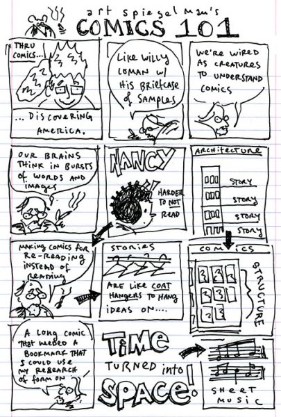 «Για μένα το να μπορώ να φέρω το λεξιλόγιο από την Γερτρούδη Στάιν Στάιν και τον Τζέιμς Τζόις μέχρι τον Πικάσο και άλλες πιο τυπικές πτυχές της δημιουργίας εικόνων, μου άνοιξε πολύ νέα πεδία» δήλωσε ο Σπίγκελμαν. «Για να κάνω το «Maus», όλα όσα έμαθα εδώ έγιναν νέο λεξιλόγιο για μένα».