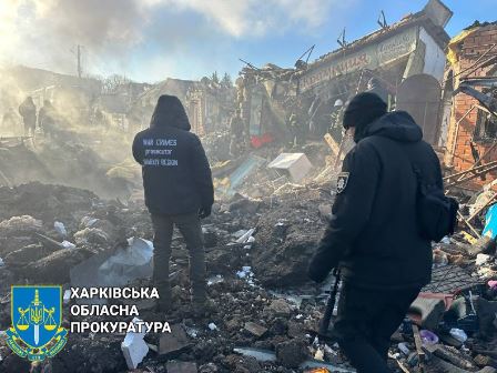 Πλάνα που αναρτήθηκαν από τη δημόσια ραδιοτηλεόραση Suspilne στην εφαρμογή ανταλλαγής μηνυμάτων Telegram δείχνουν διασώστες να ψάχνουν μέσα σε σωρούς από μπάζα, συντρίμμια που καίγονται ακόμη και έναν μεγάλο κρατήρα στη Σεφτσένκοφε, περίπου 80 χλμ. νοτιοανατολικά της πόλης Χάρκοβο.