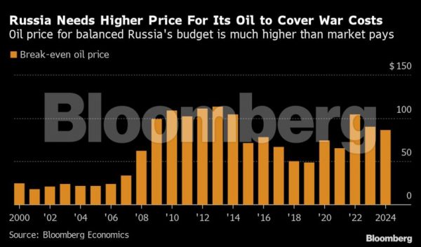 Εάν οι τιμές του ρωσικού αργού παραμείνουν στα επίπεδα του Δεκεμβρίου, τα έσοδα θα μειωθούν κατά περίπου 2,4 τρισεκατομμύρια ρούβλια, ή 1,6% του ΑΕΠ, κάτω από τον στόχο φέτος, σύμφωνα με τον Alexander Isakov, οικονομολόγο της Bloomberg Economics.