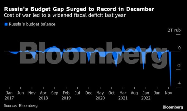 Το έλλειμμα για ολόκληρο το 2022 έφτασε περίπου τα 3,3 τρισ. ρούβλια, αντιστρέφοντας το πλεόνασμα στους 11 μήνες του έτους.
