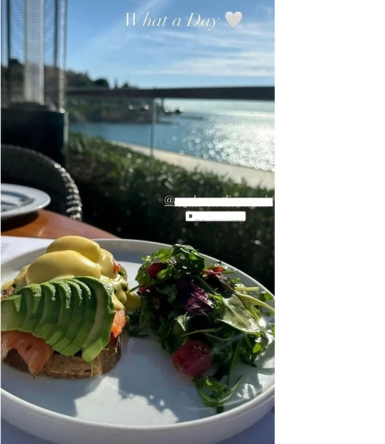 Η Κωνσταντίνα Σπυροπούλου απόλαυσε ένα πλουσιοπάροχο όσο και υγιεινό μεσημεριανό γεύμα, ένα ανοιχτό σάντουιτς με σολομό και αβοκάντο και σαλάτα, ενώ σε εμφανή θέση πάνω στο τραπέζι βρίσκονταν το μπιμπερό του μωρού, έτοιμο προς χρήση.