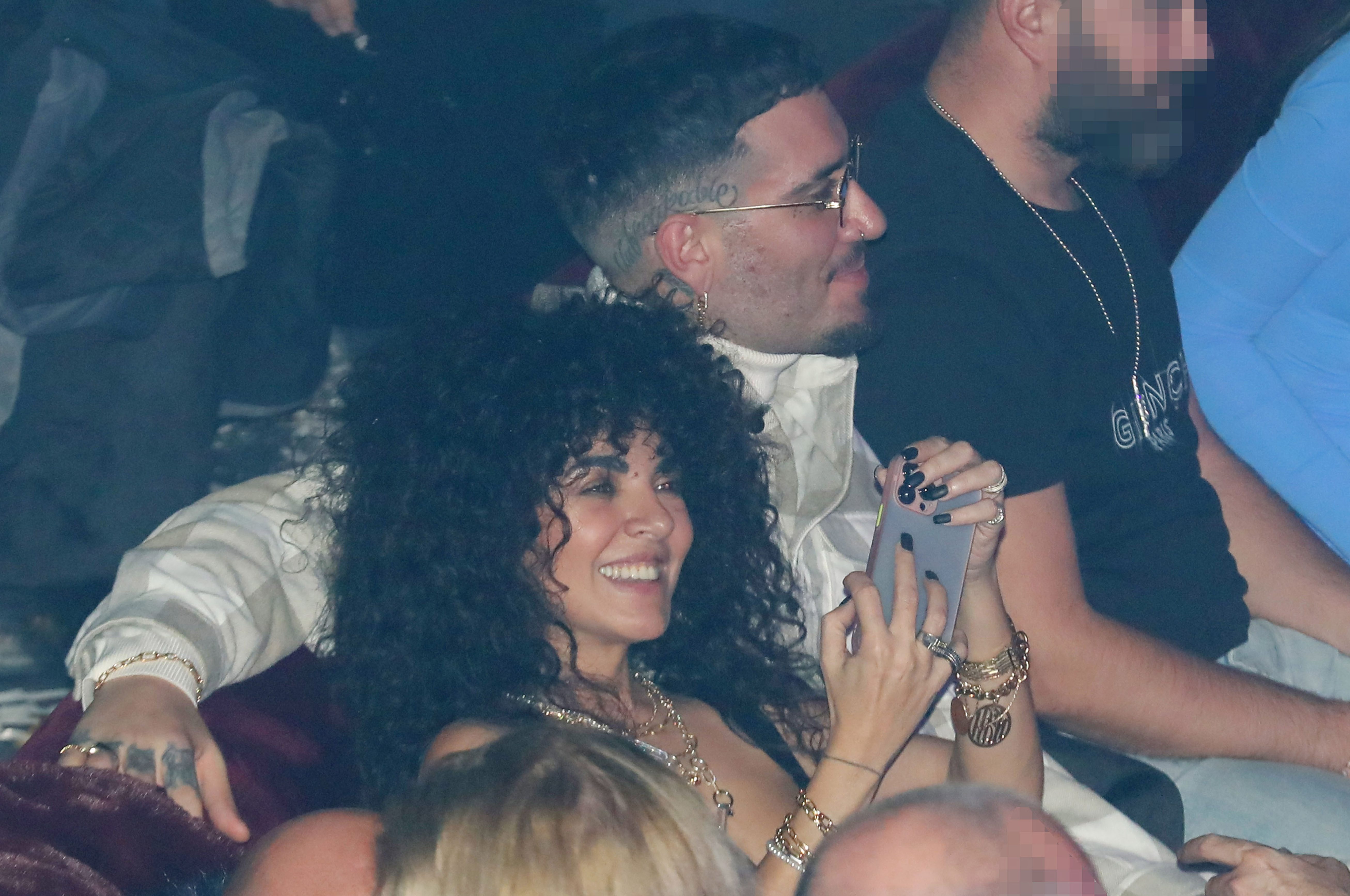 Μάλιστα, κάποια στιγμή, έμειναν αγκαλιά να παρακολουθούν το πρόγραμμα, με τη Μαρία Σολωμού να απαθανατίζει τις στιγμές τους με το κινητό της, ενώ αργότερα άρχισε να λικνίζεται στον ρυθμό των τραγουδιών και ο τράπερ της χτυπούσε παλαμάκια.