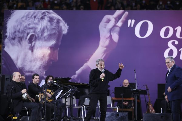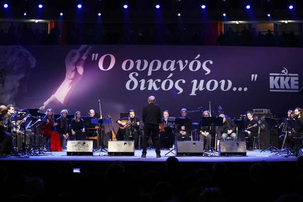 «Ιστορική βραδιά γιατί ποτέ στα πολιτισμικά δρώμενα αυτής της χώρας δεν συνέβη αυτό το γεγονός που συμβαίνει απόψε εδώ. Ακόμα και το ΚΚΕ ξεπέρασε τον χαρακτηρισμό της προόδου και μπήκε στη σφαίρα της υπέρβασης. Μια υπέρβαση που χρειάζεται κότσια για να την κάνεις. Και το μόνο κόμμα που έχει κότσια όχι μόνο να την κάνει αλλά και να την υλοποιήσει είναι το Κομμουνιστικό Κόμμα Ελλάδας», είπε χαρακτηριστικά ο συνθέτης καταχειροκροτούμενος από χιλιάδες κόσμου.