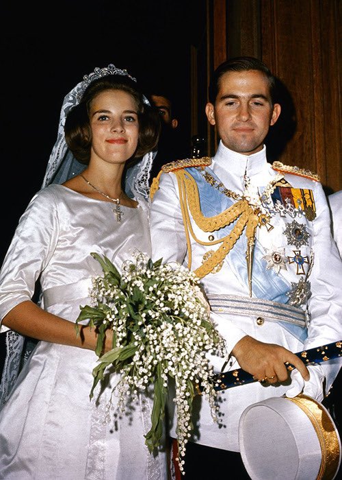 Φτιαγμένο εξ ολοκλήρους από «Κρίνους της Κοιλάδας», τα ίδια λουλούδια που συνέθεσαν τη γαμήλια ανθοδέσμη της το 1964 ήταν το στεφάνι της Αννας Μαρίας στον σύζυγό της, τέως βασιλιά Κωνσταντίνο.