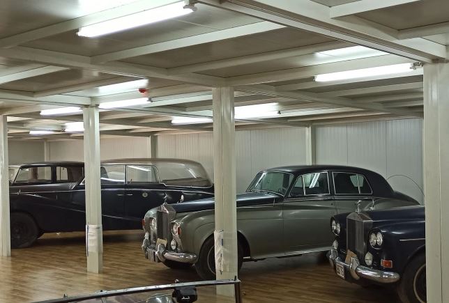 Ανάμεσα στα αυτοκίνητα που βρέθηκαν είναι μια Rolls-Royce Silver Cloud 3, κατασκευής 1965. Πρόκειται για μια κάμπριο λιμουζίνα, με χρώμα σκούρο μπλε με άσπρη οροφή. Ακόμη, βρέθηκε μία Rolls-Royce Silver Wraith, κατασκευής 1959. Το αυτοκίνητο έχει οροφή και έχει τροποποιηθεί με την προσθήκη προστατευτικών από πλεξιγκλάς. Έχει ταυτοποιηθεί η χρήση του από τον βασιλιά Παύλο και το τέως βασιλικό ζεύγος Κωνσταντίνου-Άννας Μαρίας.
