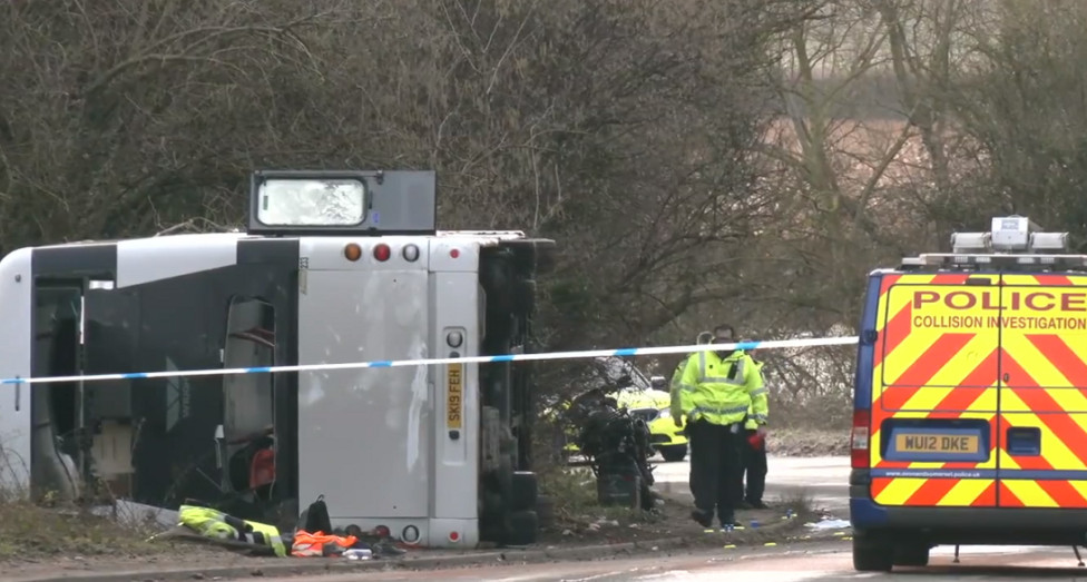 Σύμφωνα με ό,τι έχει γίνει γνωστό, το λεωφορείο μετέφερε εργάτες στον πυρηνικό σταθμό Hinkley Point C. Στο περιστατικό ενεπλάκη και ένας οδηγός μηχανής.