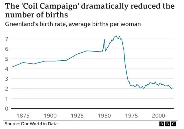 Χιλιάδες γυναίκες στη Γροιλανδία, μεταξύ των οποίων και μερικές μόλις 12 ετών, είχαν εμφυτεύσει στη μήτρα τους αντισυλληπτική συσκευή – συχνά χωρίς τη συγκατάθεσή τους – στο πλαίσιο μιας δανέζικης εκστρατείας για τον έλεγχο του αυξανόμενου πληθυσμού των Ινουίτ της Γροιλανδίας στις δεκαετίες του ’60 και του ’70.