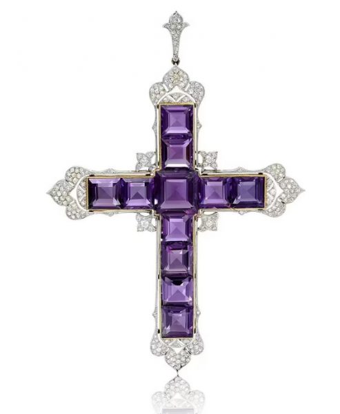 Ο τεράστιος κρεμαστός σταυρός κατασκευάστηκε το 1920 από την εταιρεία κοσμημάτων Garrard. Η πριγκίπισσα Νταϊάνα, σύμφωνα με τη Vogue, ήταν προσωπική φίλη με τον άνθρωπο στον οποίο ανήκε, τον Βρετανό επιχειρηματία Naim Attallah.