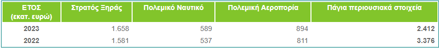 Για το 2022, ο Κρατικός Προϋπολογισμός σημείωσε εντυπωσιακή αύξηση των πιστώσεων για την υλοποίηση εξοπλιστικών προγραμμάτων, αφού οι πληρωμές για αγορές αυξήθηκαν από 515.000.0000 ευρώ το 2020 σε περίπου 2.500.000.000 ευρώ το 2021 και σε 3.376.0000.000 ευρώ το 2022, ενώ οι φυσικές παραλαβές αναμένεται να αυξηθούν από τα 500.000.000. ευρώ ετησίως κατά τα προηγούμενα χρόνια, συνολικά στα 11.500.000.000 ευρώ από το 2022 έως το 2028. Μικρή αύξηση (2% – 49.260.000 ευρώ) παρουσιάζουν και οι πιστώσεις που αφορούν το προσωπικό, ενώ αντίθετα ο λειτουργικός προϋπολογισμός παρουσιάζει μία αξιοσημείωτη σταθερότητα κατά την τελευταία τριετία.