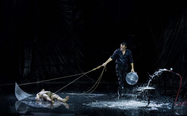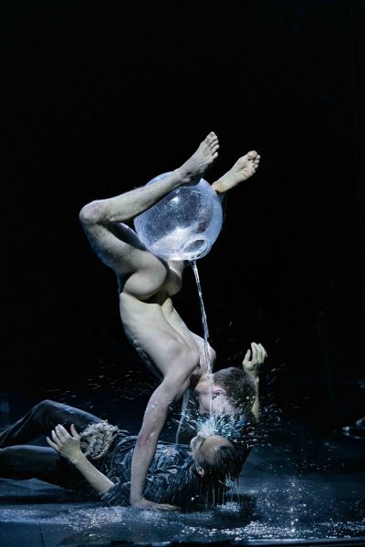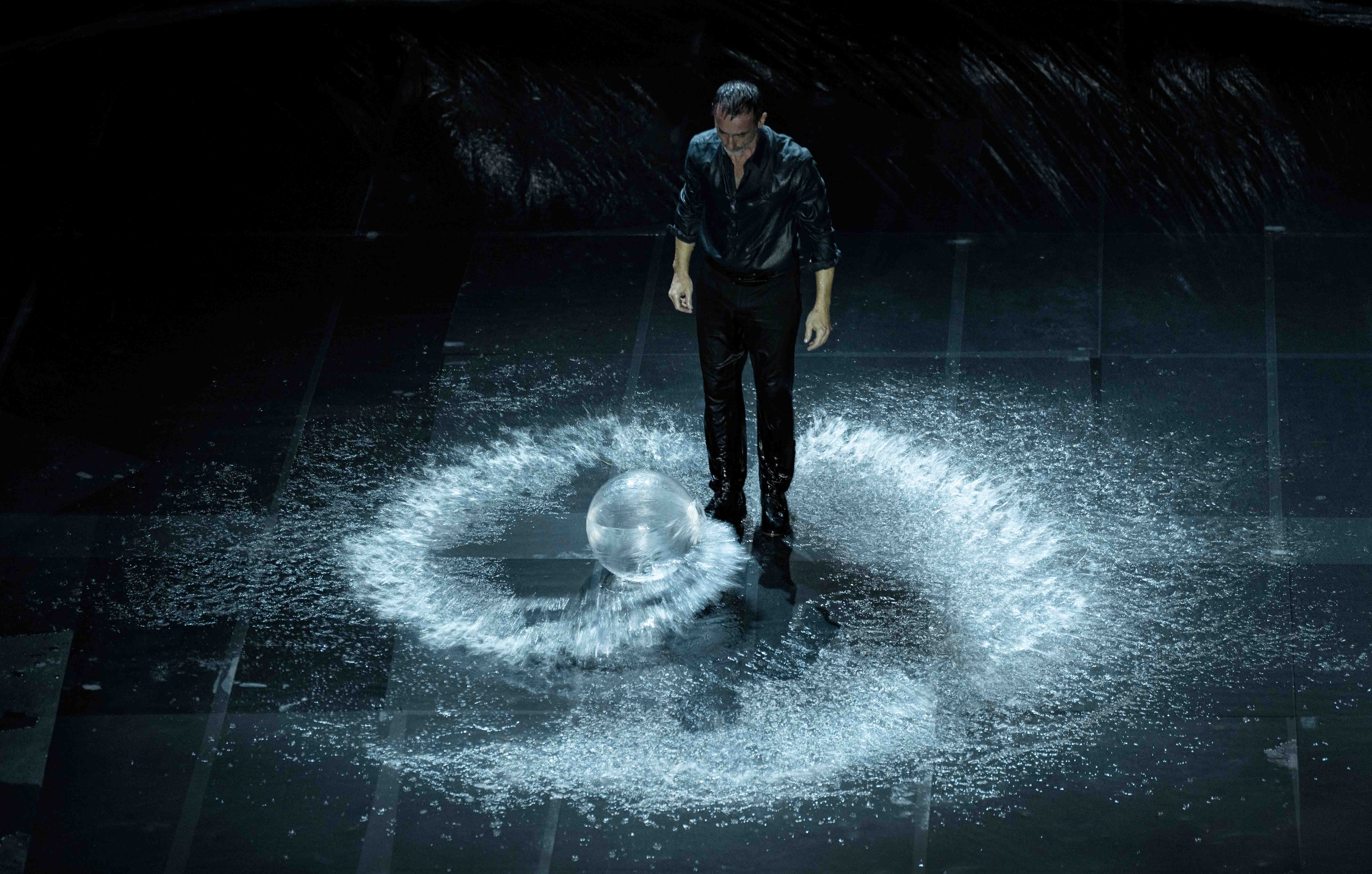 Ο Δημήτρης Παπαϊωάννου είναι στη σκηνή αρχικά μόνος. Απόλυτος κυρίαρχος, παντοδύναμος αλλά με βλέμμα ανήσυχο σαν κάτι συνεχώς να ψάχνει. Ντυμένος στα μαύρα και βρεγμένος αναμετράται με έναν πίδακα νερού, με ένα κόκκινο λάστιχο, μια ντισκομπάλα και ένα χταπόδι. Αυτό που στο τέλος ακούμε με μανία να χτυπά 30 φορές και να πάλλεται όλη η αίθουσα.