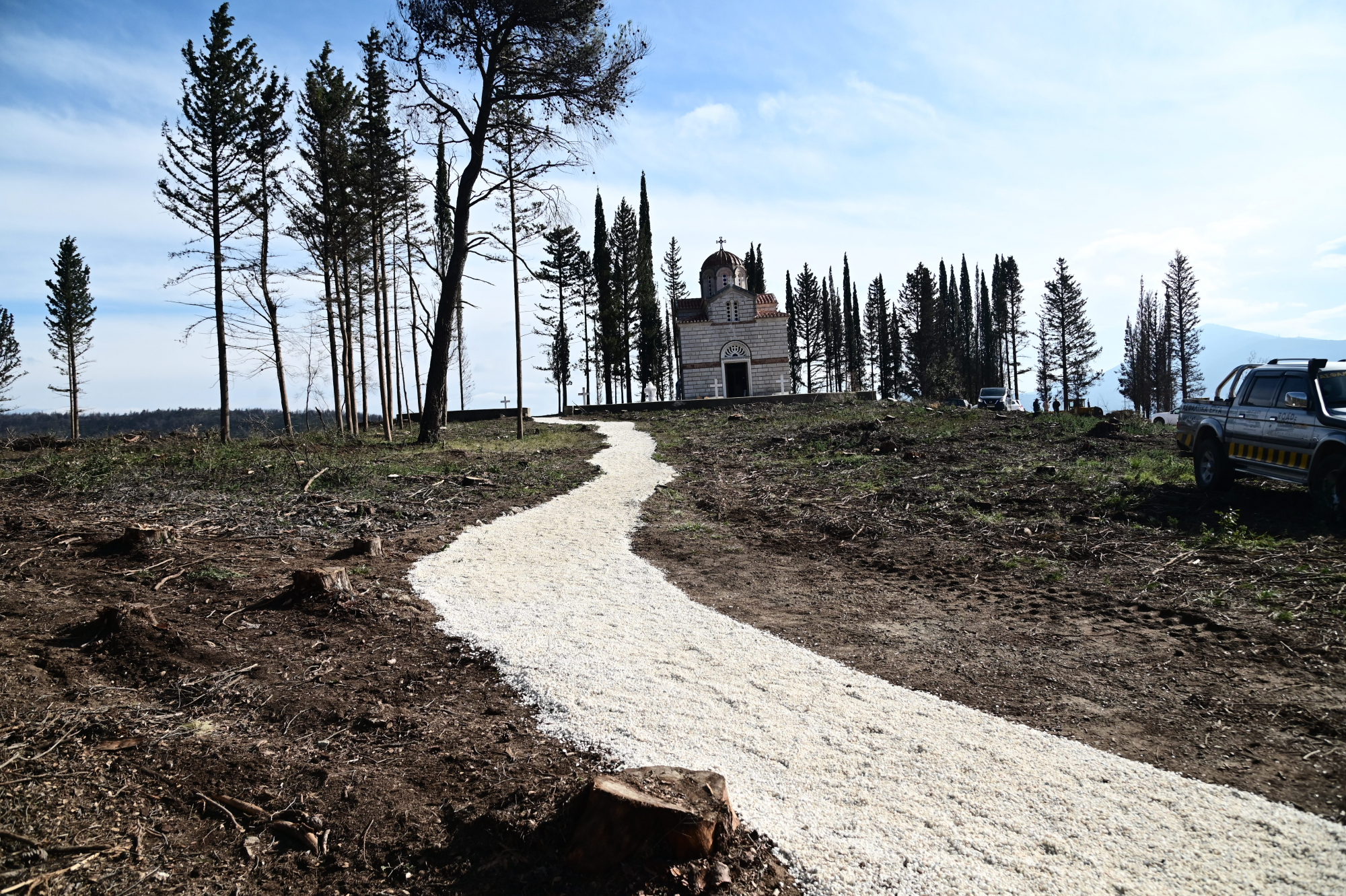 Μέσα σε λίγες ώρες, η περιοχή όπου βρίσκονται οι οικογενειακοί τάφοι της πρώην βασιλικής οικογένειας, στο Τατόι, άλλαξε όψη.