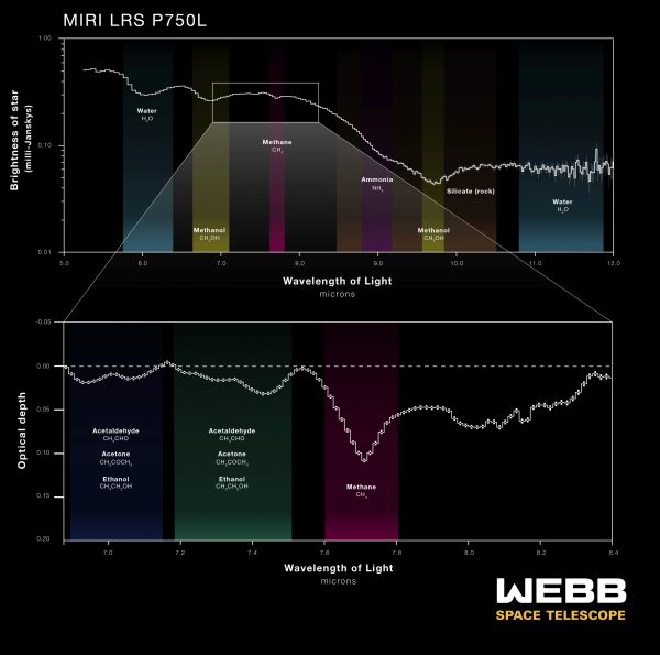 Φασματικά δεδομένα από το όργανο MIRI του Webb αποκαλύπτουν την παρουσία ανόργανων και οργανικών ουσιών (NASA, ESA, CSA, J. Olmsted)