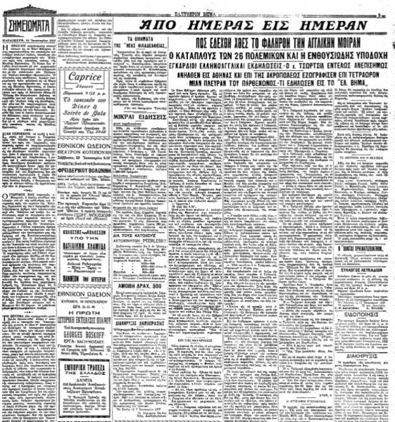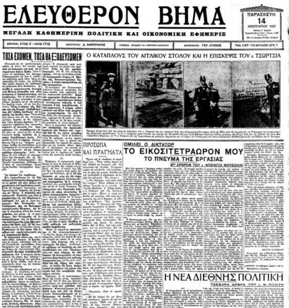 «ΕΛΕΥΘΕΡΟΝ ΒΗΜΑ», 14.1.1927, Ιστορικό Αρχείο «ΤΟ ΒΗΜΑ» & «ΤΑ ΝΕΑ»