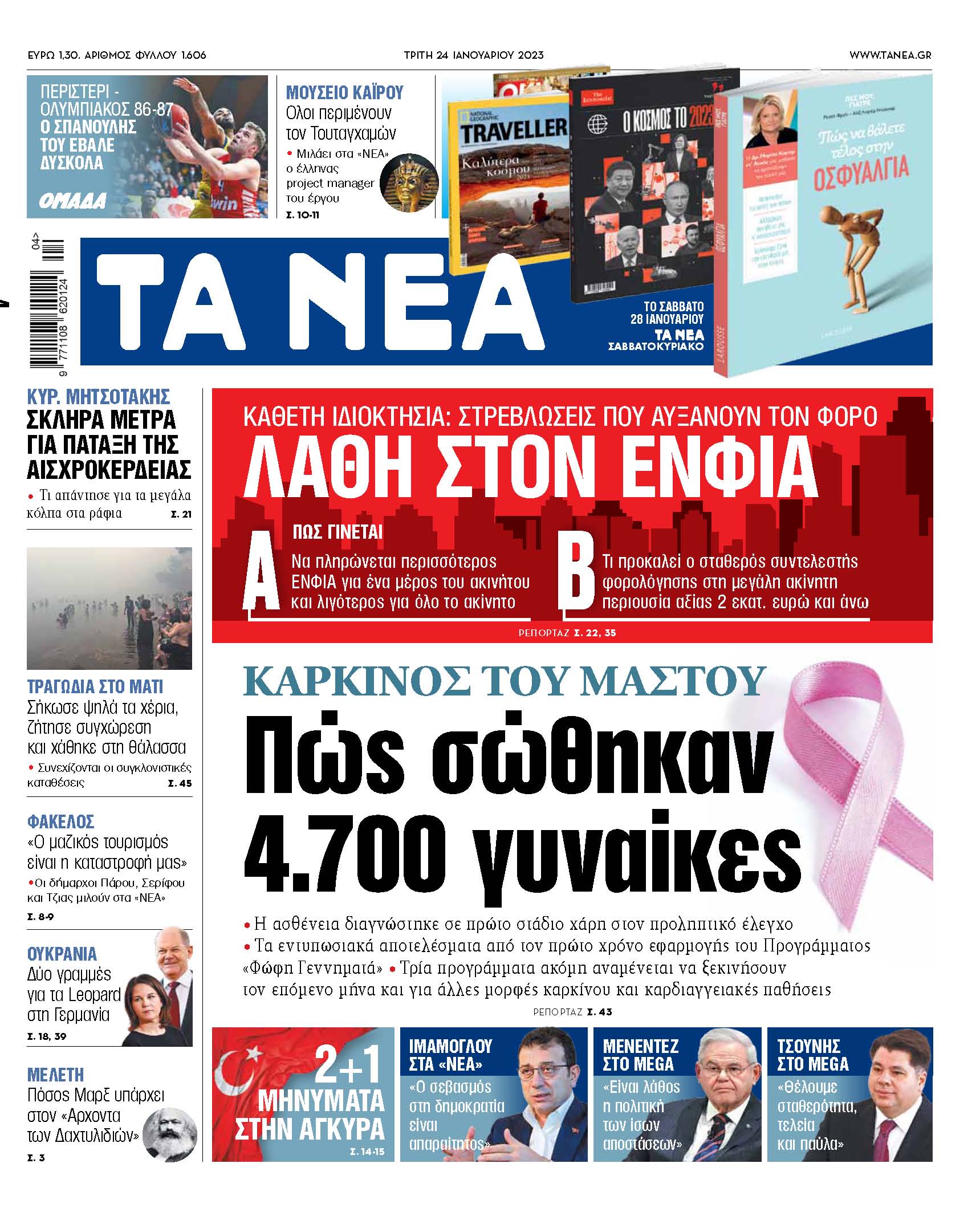 Καρκίνος του μαστού Πώς σώθηκαν 4.700 γυναίκες •Η ασθένεια διαγνώστηκε σε πρώτο στάδιο χάρη στον προληπτικό έλεγχο •Τα εντυπωσιακά αποτελέσματα από τον πρώτο χρόνο εφαρμογής του Προγράμματος «Φώφη Γεννηματά» •Τρία προγράμματα ακόμη αναμένεται να ξεκινήσουν τον επόμενο μήνα και για άλλες μορφές καρκίνου και καρδιαγγειακές παθήσεις