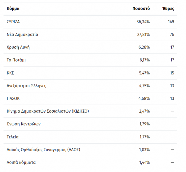 Η νίκη ΣΥΡΙΖΑ σε αριθμούς – Τα αποτελέσματα των εκλογών